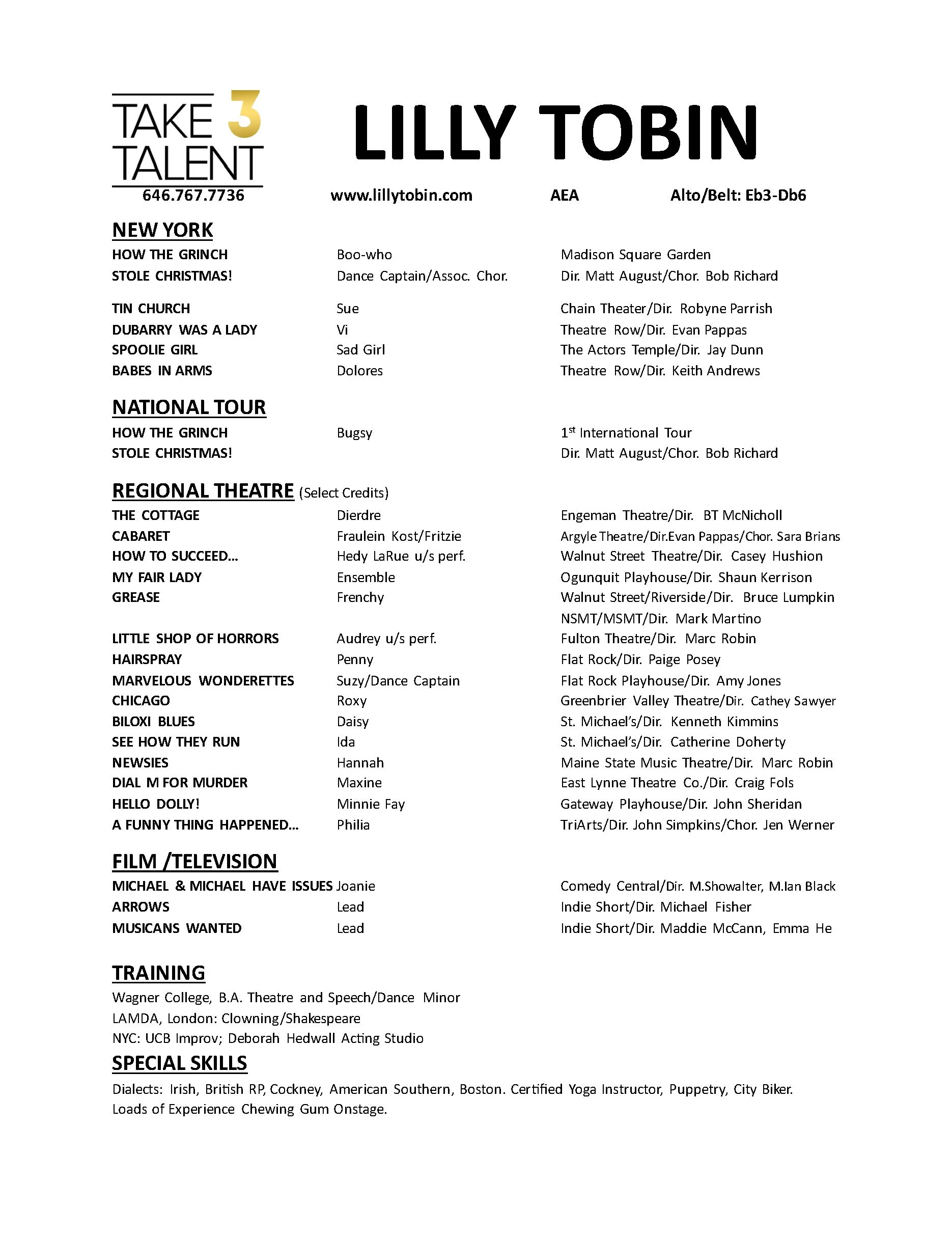 “Lilly Tobin is impossible to ignore. A combination of Carol Burnett, Minnie Pearl & Marcel Marceau.” –Bill Moss, Hendersonville Lightning